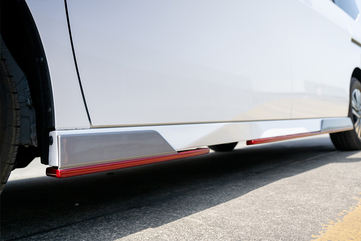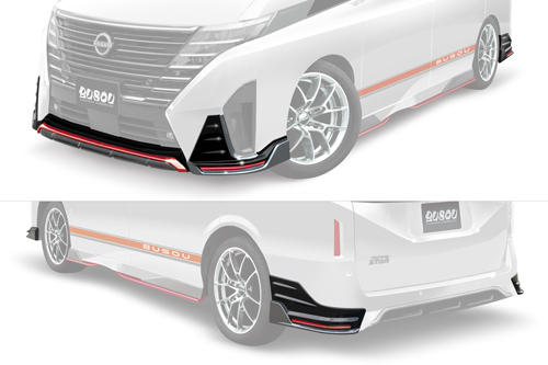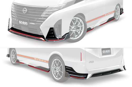 ・フロント中央シルバーラインは塗装となります。 ・左右モール部分は、レッド/シルバー両方同梱となります。 ・フロントスポイラーとリアスポイラー(左右)のセットとなります。 ※F/Rセットは、サイドスポイラーとリアセンターは付属しません、別売りとなります。 通常単品合計:¥308,000- F/R SETとの差額:¥33,000- |
